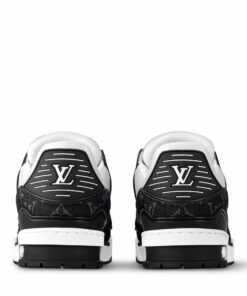 Louis Vuitton LV Trainer Maxi sneaker in black and white monogram denim and leather.