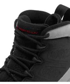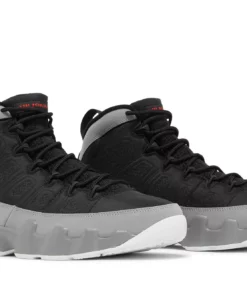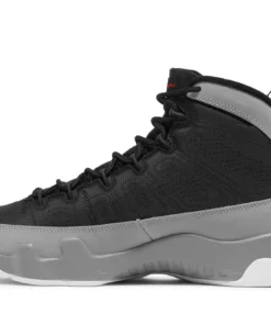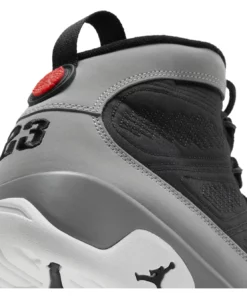 The Air Jordan 9 Particle Grey is a retro sneaker with a modern twist. This updated version of the ’90s classic features a breathable black textile upper, speed laces, and tonal stitch detailing. The nubuck mudguard in a neutral grey finish wraps around the heel and extends up the mid-cut collar. Contrasting hits of crimson land on the sneaker’s branding elements, including an Air Jordan tongue tag and a molded Jumpman emblem at the heel. Whether you’re hitting the court or just hitting the streets, this sneaker is sure to turn heads.