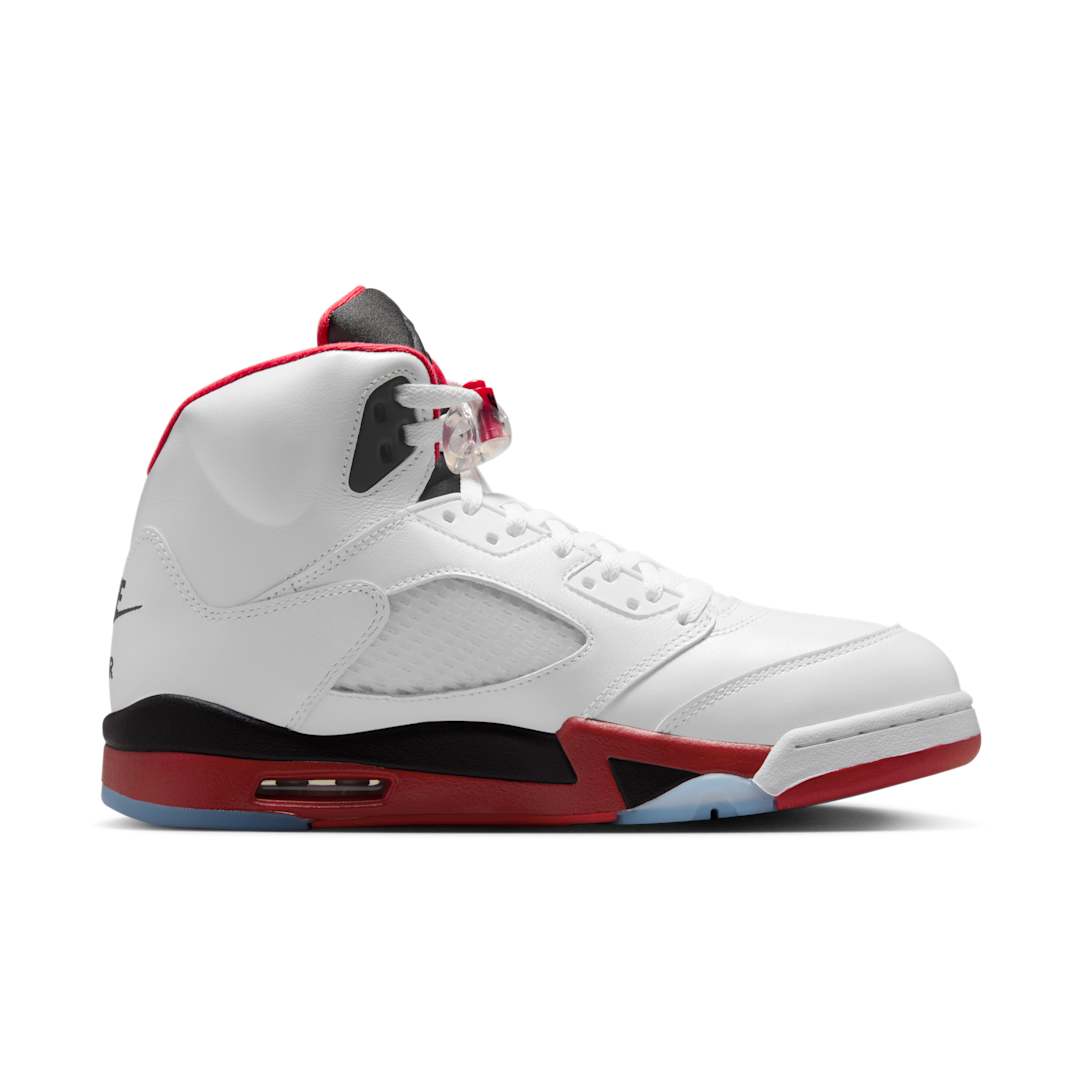 The Air Jordan 5 “Fire Red” (Black Tongue) is releasing on September 13, 2025, via retailers.