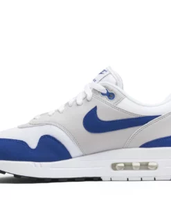 Air Max 1 OG Anniversary ‘Royal’ was a 2017 re-release of the 1987 OG royal blue colorway. The design combines a white and grey upper with a royal blue swoosh and royal blue overlays around the base. Initially released in limited quantities in March of 2017, the sneaker eventually re-stocked in October of 2017.