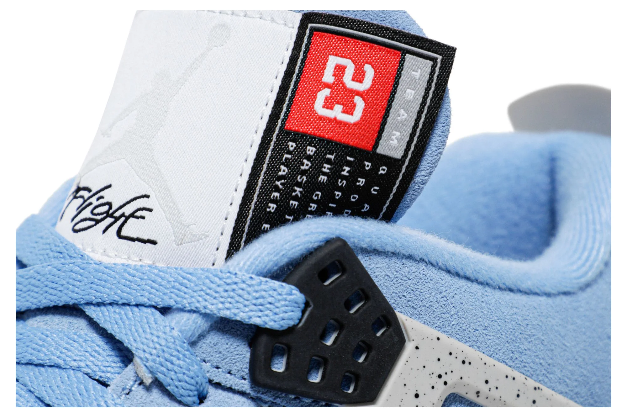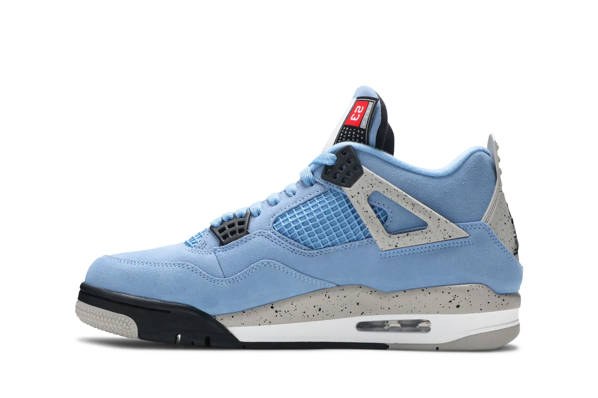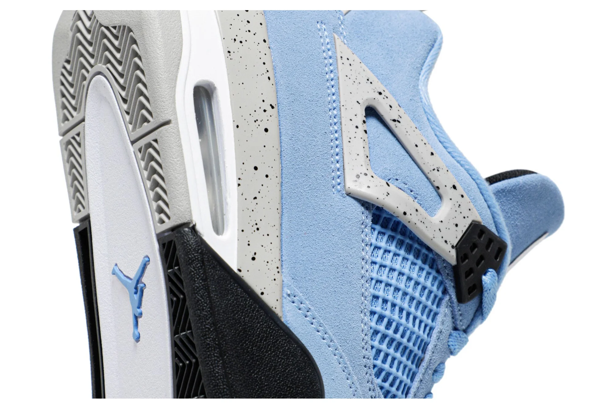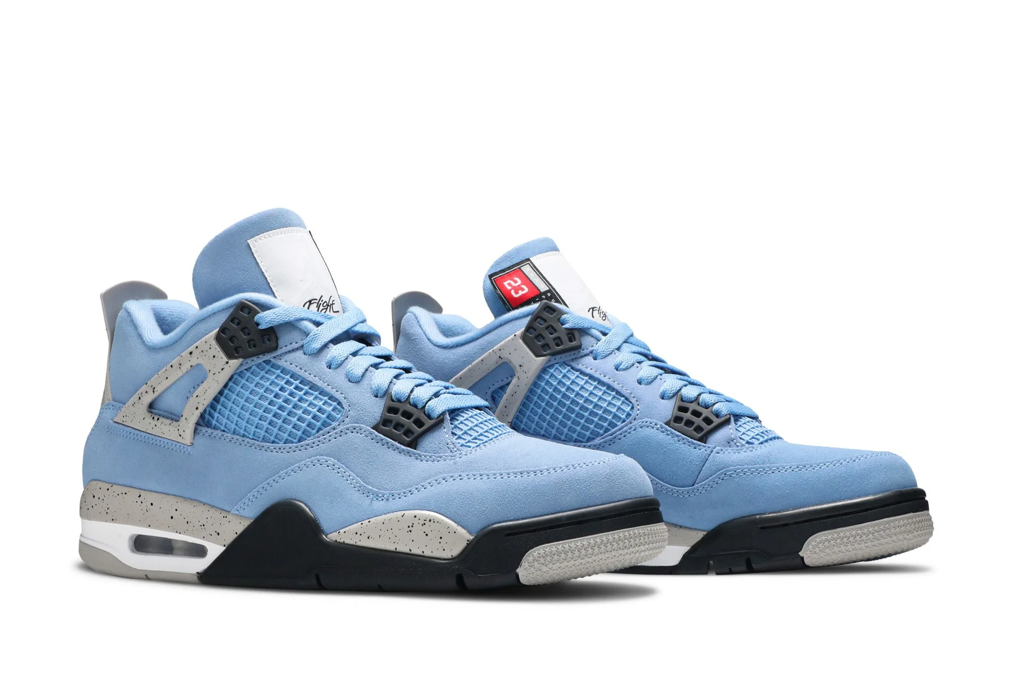 This Air Jordan 4 “University Blue” is dressed in a University Blue, Tech Grey, White, and Black color hue. The premium suede panels, which wrap the toe, heel, and profile, are all dyed the light cool tone, while both the netting and laces match to an exact spec. The labels on the tongue introduce a scarlet tone to the sneaker via a jersey-like label. SKU: CT8527-400 Release Date: 28 Apr ,2021 Color: University Blue/Tech Grey/White/Black