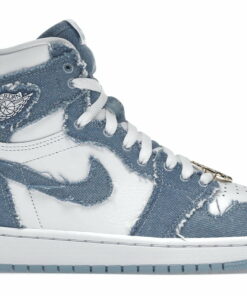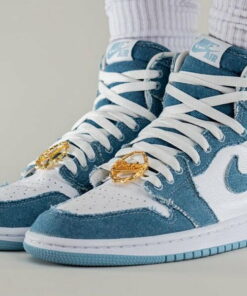Air 1 High OG Denim Sneakers Just A Quick Store is simple-style sneakers using retro colors. The sole is mesh, perforated, and cushioned to allow air to circulate. The outsole of sneakers is made from rubber, which can help prevent slipping. The upper part of the sneakers is decorated with twists and stitches using elastic thread combined with a retro color border. The front of the sneakers has padding and eyelet holes.