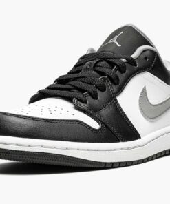 The Air Jordan 1 Low “Black/Particle Grey” is a versatile look for the low-top version of Michael Jordan’s first signature shoe. The transcendent Air Jordan 1 is one of the greatest performance and lifestyle sneakers ever created by Nike and Jordan Brand due to its casual design, comfort and, of course, connection to the greatest basketball player of all time. The “Black/Particle Grey” features white leather on the perforated toe and mid-panel. Contrasting black leather can be found on the forefoot, eyelets, collar, and heel. A Particle Grey leather Swoosh appears on both sides and a grey “Wings” logo is embroidered on the back of the shoe. A Particle Grey Jumpman is stitched onto the black nylon tongue and black “23” branding is embroidered on the lace overlay incorporated into the design of the black shoe laces.