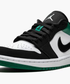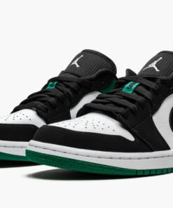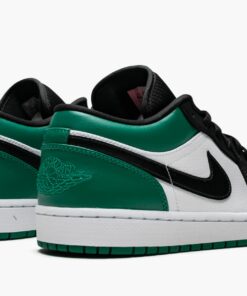 The Air Jordan 1 Low “Mystic Green” is built on function and fashion. The versatile low-top Jordan 1 shoe can be worn just about anywhere. Using a combination of a white leather base with black nubuck overlays, the Air Jordan is unique because of its vibrant green accents on the heel and sole. Details include an exaggerated tongue, wide flat laces, and a well-cushioned Air-equipped sole unit. The insole also has a hidden pop of pink color.