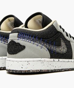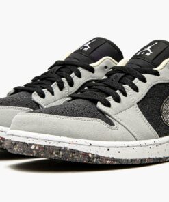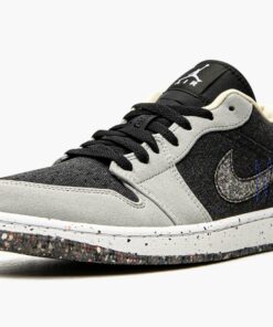 The Air Jordan 1 Low Crater “Light Smoke Grey” is an environmentally friendly version of the retro basketball shoe that was released in Fall 2021. A core offering from Nike’s “Move to Zero” initiative that places an emphasis on sustainability, the Jordan 1 Low Crater is an alternative to the standard Air Jordan 1 Low that is constructed from recycled materials. A lightweight black textile appears on the shoe’s perforated toe, mid-panel, and collar. The overlays are constructed from grey suede. A multicolor, threaded Swoosh composed of Nike Grind straps can be found on both sides and a modified, raised “Wings” graphic appears on the heel. Multicolor speckling on the white midsole and a Nike Grind outsole complete the look.