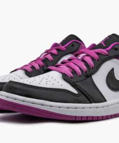 The Air Jordan 1 Low SE “Active Fuschia” brings a bold touch to the historic shoe with bright color and premium embellishments. Jordan builds upon the shoe’s white leather base with black overlays around the forefoot, lace guards, and a Nike Swoosh on the side. Done in a lively shade of fuschia, micro-perforated suede paneling at the heel adds color to the rear. Meanwhile, fuschia is also seen on the laces, Jumpman logo on the tongue, inner lining, and rubber outsole. Recognizing the basketball legend for which the shoe was created, a “23” lace keeper is added.
