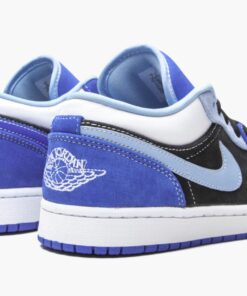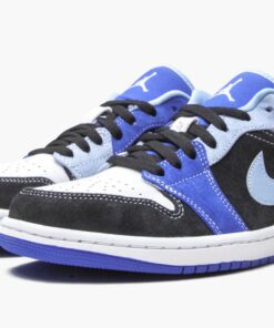 The Air Jordan 1 Low SE “Racer Blue” is one of the more unique colorways of the low-top version of Michael Jordan’s first signature shoe. The “Racer Blue” theme was used on the Air Jordan 9 of the same nickname from January 2020, though in a more subtle manner when compared to the bespoke-style, patchwork design of the shoe seen here. Racer Blue suede appears on the forefoot and heel. The deep royal blue hue can be found on the canvas tongue, as well. A dusty University Blue suede Swoosh and upper eyelet panel contrast the black suede mid-panel and toe cap. Embroidered “Wings” and Jumpman branding can be found on the heel and the tongue, respectively. A white canvas overlay with “23” embroidery contrasts the black shoe laces. Jordan Brand finishes off the design with a white midsole and Racer Blue outsole.