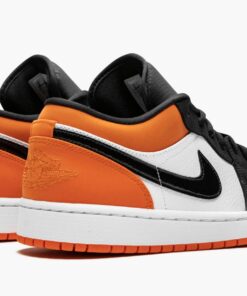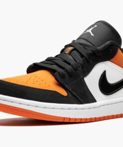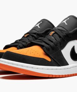 The Air Jordan 1 Low “Shattered Backboard” is the low top version of the extremely popular high-top colorway. The Air Jordan 1 “Shattered Backboard” is inspired by an overseas exhibition game Michael Jordan participated in during his rookie 1985 season. During the game, Jordan famously broke the glass of the backboard after a dunk. One of the most sought after non-original Air Jordan 1 models ever, the “Shattered Backboard” returns, this time in low top form. In line with the high-top, the slimmed down low sports premium Starfish-colored tumbled leather on the toe, mid panel, Swoosh, and ankle collar. The bright orange hue is also found on the wings logo on the heel and the “23” embroidered on the tongue. Black overlays, laces, and nylon tongue allow the Starfish orange to highlight the sneaker. The Air Jordan 1 Low “Shattered Backboard” released Summer 2019.