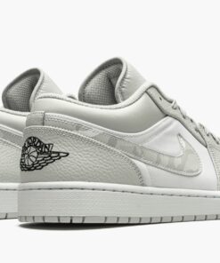 The Air Jordan 1 Low “White Camo” is a versatile and desirable low-top version of Michael Jordan’s signature shoe with a subtle camouflage pattern. This refined look for the Jordan 1 Low features light grey tumbled leather overlays on the forefoot and eyelets. Contrasting white perforated leather appears on the toe and a smooth variant of the material covers the mid-panel. Branding, like the “White Camo” leather Swoosh located on either side, as well as the mini black Jumpman embroidery the tongue and “Wings” emblem on the heel, add classic styling to the Air Jordan 1.
