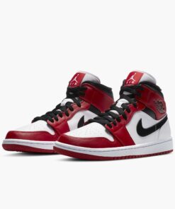 The Air Jordan 1 Mid “Chicago 2020” is yet another desirable “OG” inspired colorway of Michael Jordan’s first signature model in modified mid-top height. The Jordan 1 Mid is entrenched as a popular variant of the legendary silhouette as Jordan Brand shows no signs of slowing down its pace of producing mid-tops in classic colorways such as this “Chicago” look. White leather forms the base of the upper, appearing on the perforated toe, mid-panel, and heel. Black leather Swoosh detailing graces each side and black “Wings” branding can be found on the fiery red leather collar. Additional red leather overlays appear on the forefoot, eyelets, and toe cap. Black cotton laces sit atop the white nylon tongue. A red tongue tab with white Jumpman detailing finishes off the look of the “Chicago” Jordan 1 Mid. Release date: Summer 2020.