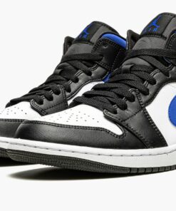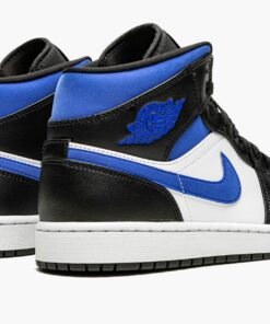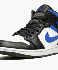 The Air Jordan 1 Mid “Racer Blue/Black/White” is a timeless look for the mid-top silhouette of Michael Jordan’s first signature shoe. One of several easy-wearing looks for the Air Jordan 1 Mid released by Jordan Brand in 2021, the “Racer Blue/Black/White” colorway places white leather on the perforated toe and mid-panel. Black leather contrasts the look on the forefoot, eyelets, collar, and heel. Jordan Brand complements the neutral panels with a Racer Blue leather Swoosh on either side and a Racer Blue “Wings” logo on the collar. The same shade of blue also appears on the padded suede collar and on the Jumpman and “Air” detailing printed onto the black nylon tongue tag on the black nylon tongue. A simple white midsole and black outsole combination completes the look of yet another clean example of the Air Jordan 1 Mid.