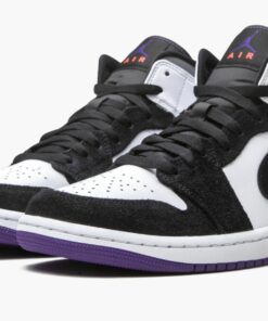 The Air Jordan 1 Mid SE “Court Purple Suede” is yet another desirable colorway of Michael Jordan’s first signature shoe that mixes colors and materials in a unique way. The Jordan 1 Mid has become something of a blank canvas for Jordan Brand ever since the brand positioned the model as an inclusive, more widely accessible alternative to the model’s more historic high-top relative. Here, the “Court Purple Suede” continues the sentiment of experimentation by pairing hairy black suede panels and Swoosh branding with a white leather base on the upper. A purple “Wings” logo appears on the collar and purple Jumpman graphic dots the branding patch on the top of the black nylon tongue. A plush Court Purple suede overlay graces the heel. The white midsole is married to a Court Purple outsole to complete the look.