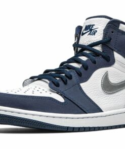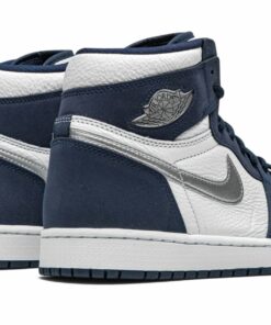 The Air Jordan 1 High Co.Jp “Midnight Navy” is one of several exclusive colorways that originally appeared in Nike’s celebrated “Concept Japan” series that returned as a global release in 2020. The “Midnight Navy” was one of the first Jordan 1s to feature a navy color scheme when it did so all the way back in 2001. As it was back then, the colorway remains fresh and versatile today. The upper displays a white leather construction on the perforated toe, mid-panel, and collar. Contrasting Midnight Navy overlays in a smooth nubuck material can be found on the forefoot, eyelets, collar, and heel. A Metallic Silver leather Swoosh is located on either side of the shoe. The hue is used again on the “Wings” emblem located on the collar. Final details include a white tumbled leather tongue with navy “Nike Air” embroidery, blue shoelaces, and a white midsole contrasted by a blue outsole. Release date: November 14, 2020.