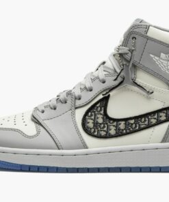 The Dior x Air Jordan 1 High is arguably the most desirable sneaker collaboration of 2020. Produced in Italy in extremely limited quantities, Dior’s first ever collaboration with Jordan Brand featured a multilayered release rollout that only stoked demand for one of the most sought after Jordan 1s in recent history. Employing a minimal appearance that parallels the original “White/Grey” Jordan 1 from 1985, the Dior variation features supple Dior grey leather overlays on the forefoot, eyelets, collar, and heel. White leather dots the mid-panel and perforated toe. An embroidered monogram Swoosh appears on either side and an “Air Dior” Wings logo can be found on the collar. A white rubber midsole and icy blue translucent outsole tie together the look of the understated Dior x Air Jordan 1. The Dior x Air Jordan 1 High was released on June 25, 2020.