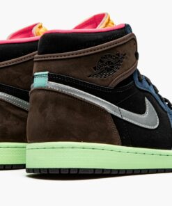 The Air Jordan 1 High “Bio Hack” is a daring new colorway of Michael Jordan’s first signature shoe that loosely resembles a special collaboration in Jordan Brand’s history. The “Bio Hack” pulls inspiration from Undefeated’s mid-2000s Nike SB Dunk colorway in which various contrasting colors were joined together to form one of the most daring Jordan 1s of the era. Differing slightly from the “OG” look it draws favorably from, the “Bio Hack” nonetheless displays a totally mixed-up appearance, beginning with a Baroque Brown collar and heel that looks to have been used on Travis Scott’s Air Jordan 1 from 2019. Elsewhere, a Metallic Silver leather Swoosh appears on the black nubuck mid-panel, and the perforated toe is finished off in teal suede. The vibrant Laser Orange nylon tongue and tonal laces add a welcomed burst of color. Release date: September 2020.