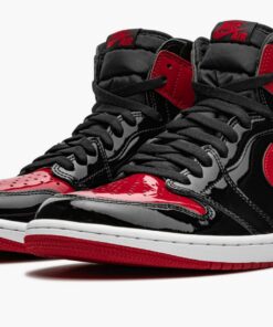 The Air Jordan 1 High OG “Patent Bred” updated an original colorway of Michael Jordan’s first signature shoe with a patent leather finish. Based on the iconic “Bred” colorway, the aptly named “Patent Bred” features a modified patent leather construction. Much like the original “Bred,” Varsity Red leather detailing can be found on the perforated toe, collar, heel, and Swoosh, though in patent leather. Black patent leather forms the base. A black “Wings” logo can be found on the collar and red “Nike Air” detailing appears on the black nylon tongue tag on the black nylon tongue. A white rubber midsole and Varsity Red-colored outsole complete the look.