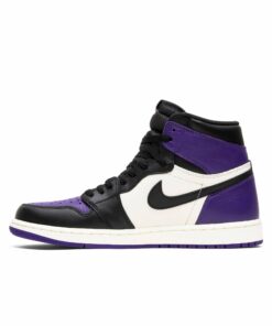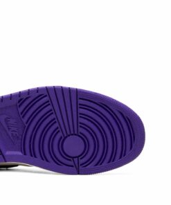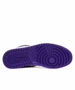 The Air Jordan 1 Retro High OG ‘Court Purple’ features an all-leather build, executed with the same color-blocking seen on AJ1 models like the ‘Shattered Backboard’ and ‘Bred Toe.’ Here, the toe box, heel and wings are finished in Court Purple, while a crisp white quarter panel is overlaid with a contrasting black Swoosh. The shoe earns its ‘OG’ designation through the purple Nike tag on the black nylon tongue.