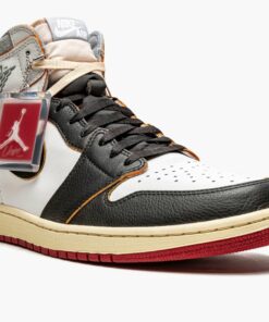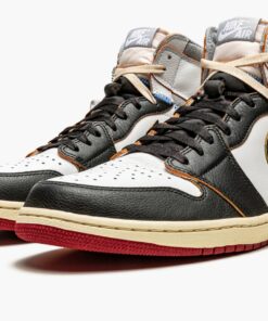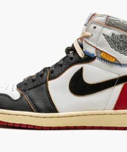 The Union x Air Jordan 1 “Black Toe” is one the two colorways of the iconic model that was remixed by the Los Angeles-based menswear boutique. Featuring a “cut and paste” theme, the Union collaboration combines two original colorways of the Air Jordan 1 into one shoe. For this version, the unique design combines the body of the “Black Toe” Jordan 1 with the ankle of the rarely seen white and grey colorway. The construction is also given a vintage look with yellowed leather, visible foam on the tongue, and a distressed treatment to the leather on the ankle paneling. A “UN/LA” tag is applied to each ankle to complete the highly coveted design. The Union x Air Jordan 1 “Black Toe” released in extremely limited quantities in November 2018.