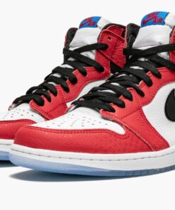 The Spider-Man x Air Jordan 1 “Origin Story” is a special edition of Michael Jordan’s first signature shoe that celebrates the 2018 release of the Marvel movie “Spider-Man: Into the Spider-Verse.” Using the blueprint of the original “Chicago” colorway that is worn by the character Miles Morales in the film, the design features a white and and red leather upper with a few modifications inspired by Spider-Man. The red leather panels on the upper feature a tonal dot print that is also reflective, referencing Spider-Man’s suit. The “Nike Air” tongue tag is presented in blue and red as another nod to the superhero, while an icy clear outsole completes the colorway. Released on December 14, 2018 to coincide with the opening of the film, the Spider-Man x Air Jordan 1 “Origin Story” is a must-have for sneaker and comic book aficionados alike.