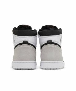 The Air Jordan 1 Retro High OG ‘Stage Haze’ features neutral tones on the foundational sneaker that started it all. The upper combines a white leather base with a grey suede heel overlay and a forefoot overlay in cracked black leather. Matching black accents settle on the signature Swoosh and a retro Wings logo stamped on the lateral ankle. Nike branding is outlined in Bleached Coral on the woven tongue tag, delivering a subtle flash of color. The high-top rests on a rubber cupsole that pairs white sidewalls with a grey rubber outsole.
