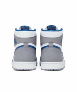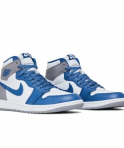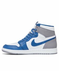 The Air Jordan 1 Retro High OG ‘True Blue’ dresses the timeless silhouette in familiar hues borrowed from an OG colorway of the Air Jordan 3. The smooth leather upper combines a crisp white base with contrasting hits of True Blue on the forefoot overlay, Swoosh, and eyestay. A neutral Cement Grey finish is applied to the heel and collar overlay, featuring a retro Wings logo stamped in blue. A woven Nike Air tongue tag completes the OG-inspired aesthetic. Lightweight cushioning is provided by an encapsulated Air-sole unit nestled in the heel of the rubber cupsole.