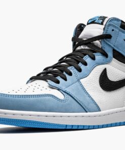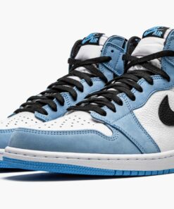 The Air Jordan 1 High “University Blue” is inspired by an original colorway of Michael Jordan’s first signature shoe. An early 2021 release by Jordan Brand, the “University Blue” Jordan 1 comes in the desirable high-top silhouette and recruits a mixture of materials and “UNC” flavored colors for an appealing design. Full-grain white leather appears on the mid-panel and perforated toe. University Blue nubuck leather overlays on the forefoot, eyelets, collar, and heel contrast the crisp white base. Jordan Brand adds a black leather Swoosh on either side and a black “Wings” logo to the collar. Additional details include black laces on a white nylon tongue, a light blue “Nike Air” logo on the black nylon tongue tag, and supple black leather on the collar. Release date: March 6, 2021