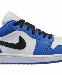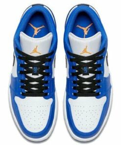 Air 1 Retro Low Hyper Royal Sneakers Just A Quick Store is simple-style sneakers using retro colors. The sole is mesh, perforated, and cushioned to allow air to circulate. The outsole of sneakers is made from rubber, which can help prevent slipping. The upper part of the sneakers is decorated with twists and stitches using elastic thread combined with a retro color border. The front of the sneakers has padding and eyelet holes.