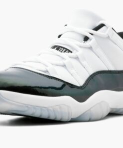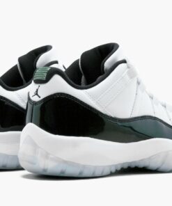 Inspired by the colors of spring, the Air Jordan 11 Low “Easteru002FEmerald” features a crisp white leather upper with the signature patent leather mudguard rendered in an iridescent green tone. The green patent leather plays well off of the icy blue outsole. Originally created as a basketball sneaker that could be worn with a tuxedo, this Air Jordan 11 certainly deserves a place in any “Easter best” outfit.