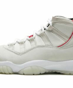 The Air Jordan 11 “Platinum Tint” is a premium edition of the iconic model that debuted in 2018. The “Platinum Tint” colorway eschews the Air Jordan 11’s traditional glossy patent leather on the mudguard and features a matte finish across the upper for a striking and refined aesthetic. The light shade of Platinum Tint covers both the ballistic nylon mesh and nubuck panels of the upper. The semi-translucent rubber outsole is also done in a matching shade. Black and red accents provide a nod to Michael Jordan’s Chicago Bulls teams. In a first for the Air Jordan 11, an extra layer of piping is added to the ankle panel.