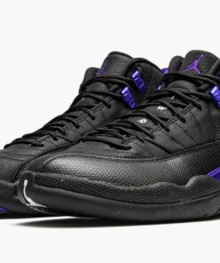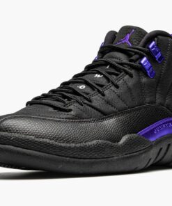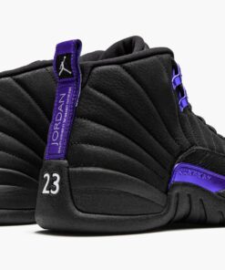 The Air Jordan 12 “Dark Concord” is a colorway from Jordan Brand’s Holiday 2020 release cycle that calls to mind classic player exclusive colorways from the 2000s. Although not officially associated with any player or team, the “Dark Concord” Jordan 12 looks as if it could have been worn by Mike Bibby with the Sacramento Kings or even Kobe Bryant back in the day. The upper features a black nubuck construction with faux lizard leather print on the forefoot and mudguard. Dark Concord accented eyelets and Jumpman branding above the black rubber midsole breaks up the shadowy appearance of the shoe. Additional purple detailing can be found on the Jumpman embroidery on the tongue, and on the nylon patch located on the heel. White embroidered “Two 3” branding appears on the tongue, and white “23” detailing dots the back of the shoe. Release date: October 23, 2020.