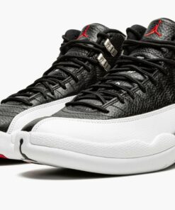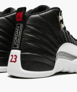 The Air Jordan 12 “Playoffs 2022” is a February 2022 release of an original colorway of the retro basketball shoe that was worn by Michael Jordan during the 1997 NBA Playoffs. An All-Star Weekend 2022 release, the Jordan 12 “Playoffs” celebrates the shoe’s 25-year anniversary in spectacular fashion as the modern incarnation of the shoe is a one-to-one remake of the original version from ‘97. The shoe features a black leather upper with contrasting Metallic Silver eyelets. Textured white leather is found on the toe, mudguard, and midsole. A silver “Jumpman” plate appears on the branding plate on the lateral side of the shoe. The black leather tongue displays a red embroidered Jumpman and “Two3” branding. Red “23” and “Jordan” branding can be found on the back of the black rubber midsole and heel, respectively. Overall, the February 2022 release of the Air Jordan 12 “Playoffs” is consistent with the original version from 1997. Release date: February 19, 2022