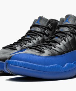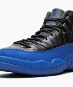 The Air Jordan 12 “Game Royal” is an updated look for the design that Michael Jordan made famous during the 1997 NBA Finals against the Utah Jazz. During Game 5 of the Finals, Jordan, then playing with a bad stomach virus, poured in 38 points enroute to a Chicago Bulls victory. Dubbed the “Flu Game” 12, the sneaker gained mystique for being the colorway Jordan wore during one of his most legendary performances ever. In 2019 Jordan Brand released this “Game Royal” Air Jordan 12, featuring identical color blocking to the “Flu Game” colorway, but with royal blue accents instead of red. The construction includes buttery black leather and contrasting Game Royal nubuck panels with a pebbled texture that add a pop of color. Black rope laces sit on a black leather tongue that features blue accents for the “Two 3” text and Jumpman logo. Further Jordan branding comes on the heel tab and heel spine with a black “23” logo on the blue rubber midsole. Completing the look is a familiar Air Jordan 12 outsole consisting of a black traction pattern with blue overlays. The Air Jordan 12 “Game Royal” released on September 21, 2019.