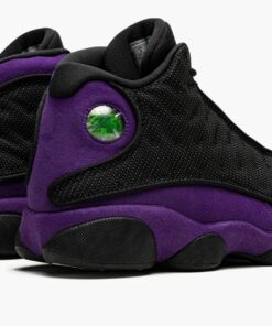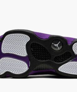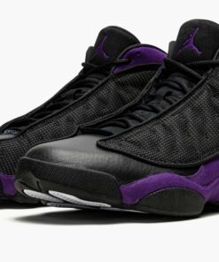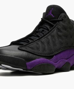 The Air Jordan 13 “Court Purple” is a January 2022 release of the retro basketball shoe in a colorway that shows love to the team uniform colors of the Los Angeles Lakers. The “Court Purple” edition of Michael Jordan’s thirteenth signature shoe is yet another popular colorway that pays respects to the Lakers—the first being the aptly named “Lakers” makeup that was released in July 2019. Sans any official Lakers branding, the “Court Purple” nonetheless features the Lakers’ color palette on its design. The “Court Purple” mimics the color block of the Jordan 13’s original “Bred” colorway by substituting the red accenting for purple along the heel and mudguard. The black mesh upper is treated to a 3M reflective finish. A holographic emblem denoting Jordan’s “Black Cat” nickname, meant to resemble a panther’s eye, can be found on the heel. A Court Purple embroidered Jumpman is found on the tongue and white “Jordan” detailing appears on the vamp. Black midsole walls complete the look. Release date: January 8, 2022