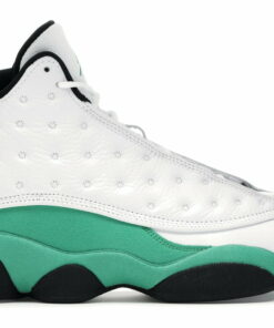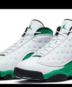 Air 13 Retro White Lucky Green Sneakers Just A Quick Store is simple-style sneakers using retro colors. The sole is mesh, perforated, and cushioned to allow air to circulate. The outsole of sneakers is made from rubber, which can help prevent slipping. The upper part of the sneakers is decorated with twists and stitches using elastic thread combined with a retro color border. The front of the sneakers has padding and eyelet holes.