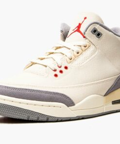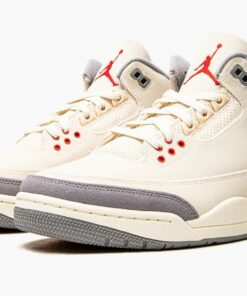 The Air Jordan 3 “Muslin” is a March 2022 release of Michael Jordan’s third signature shoe in a colorway that modifies the silhouette’s original design in a more streamlined appearance. The “Muslin” is a versatile look for the vintage basketball shoe that features a Sail-colored canvas upper with contrasting grey suede panels on the toe and heel that replace the Jordan 3’s original elephant print design. A darker shade of Sail is found on the eyelets, heel tab, and midsole. Jordan Brand places a red Jumpman on the tongue and on the heel beneath the “Air” branding. Additional red accenting is found on the lower eyelets. A visible Air unit appears in the midsole to complete the look. Release date: March 26, 2022