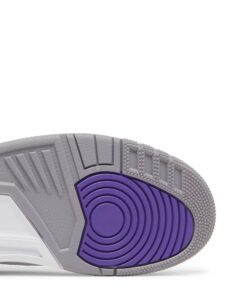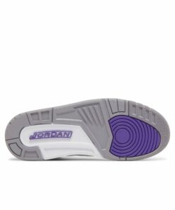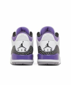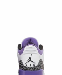 The Air Jordan 3 Retro ‘Dark Iris’ brings a revitalized color palette to the hardwood classic that introduced visible Air cushioning to the Jordan franchise. The sneaker utilizes a white tumbled leather upper with signature elephant print overlays in a dark grey finish. Violet accents make their way to the eyelets, perforated collar and the rear of the polyurethane midsole. Jumpman branding hits adorn the leather tongue and molded heel overlay. Underfoot, a grey rubber outsole provides durable traction.