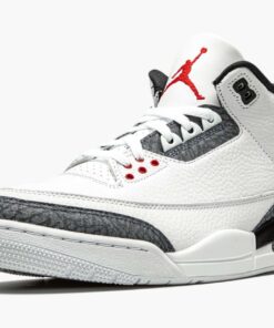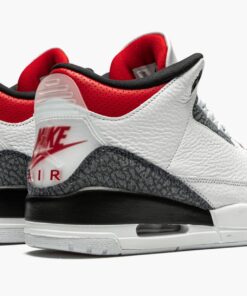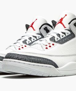 The Air Jordan 3 Denim “Fire Red” is an alternate colorway of Michael Jordan’s third signature shoe that features denim-based accenting. Released in Summer 2020, the Jordan 3 Denim “Fire Red” displays a brand new appearance while retaining the model’s core design details. White leather appears as the base of the upper. Contrasting elephant print finished in a durable denim material is located on the mudguard on the heel, toe cap, and upper eyelets. Fiery red hardware dots the lower eyelets and red dotted leather detailing appears on the collar. Additional details include a black liner, red embroidered Jumpman on the tongue, and translucent heel with dual Jumpman and “Nike Air” insignias. Release date: August 27, 2020.