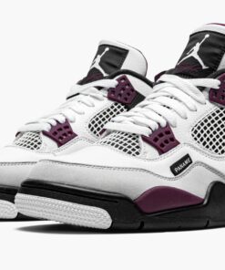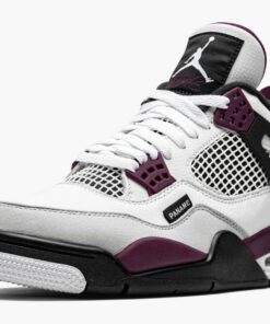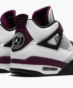 The Air Jordan 4 PSG “Paris Saint Germain” is a desirable collaboration between the European football club and Jordan Brand on Michael Jordan’s fourth signature shoe. Paris Saint Germain, or simply “PSG,” has received special colorways of classic Air Jordans since inking a sponsorship deal with Jordan Brand in 2018. The upper features smooth white leather on the mudguard, which spans from the heel to the toe. Tumbled white leather can be found around the eyelets, collar, and heel. Subtle light grey nubuck detailing is located on the toe. White netting is layered over a black synthetic material on the tongue and mid-panel. Bordeaux accenting comes into play on the plastic lace holders and midsole walls. The burgundy hue can also be found on the underside of the tongue and on the heel. Dual “Paris Saint Germain” and Jumpman detailing dots the heel, while an added “Paname” (another word for Paris) tab is found near the toe. Release date: October 10, 2020.