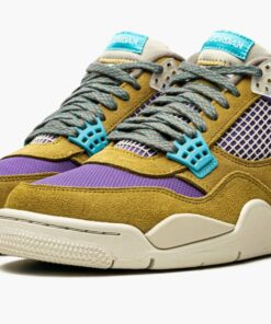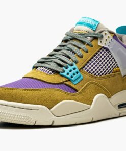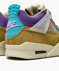 Desert mossu002Fturquioseu002Fblue suede x Union Air Jordan 4 Retro SP sneakers “30th Anniversary – Desert Moss” from JORDAN featuring panelled design, mesh detailing, logo patch at the tongue, raised logo detail, round toe, front lace-up fastening, signature Air cushioning, rubber sole, transluscent wings, stitched-down tongue and Release date: June 20, 2021. These styles are supplied by a premium sneaker marketplace. Stocking only the most sought-after footwear, they source and curate some of the most hard to find sneakers from around the world..