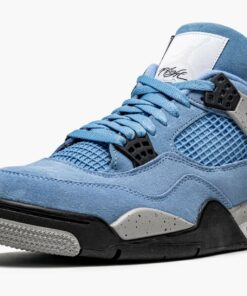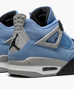 University blueu002Ftech grey leather Air Jordan 4 Retro sneakers from JORDAN featuring round toe, flat rubber sole, branded insole, perforated design, mesh panelling, ankle-length, logo patch at the tongue and signature Jumpman motif. These styles are supplied by a premium sneaker marketplace. Stocking only the most sought-after footwear, they source and curate some of the most hard to find sneakers from around the world..