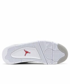 The Air Jordan 4 Retro ‘White Oreo’ features a design theme that recalls the original ‘Oreo’ AJ4 from 1999. The black tumbled leather upper of the older shoe is replaced by a clean white finish, though the speckled molded eyelets in Tech Grey remain the same. The neutral hue is repeated on the Jumpman heel logo and polyurethane midsole, featuring encapsulated Air cushioning in the forefoot and a visible unit under the heel. A second Jumpman adorns the tongue in a contrasting pop of Fire Red.