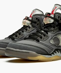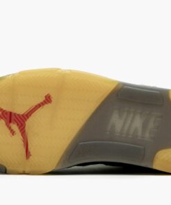The Off-White x Air Jordan 5 is Virgil Abloh’s rendition of Michael Jordan’s fifth signature shoe that incorporates the former’s deconstructed design ethos. The NBA All-Star Weekend 2020 release omits the Jordan 5’s traditional leather construction for a light grey synthetic, semi-translucent material. Circular designs with Abloh’s signature Nike branding motif can be found on the inside of each shoe over the midfoot netting. For the first time ever on a non-original Air Jordan 5 colorway, embroidered Nike Air branding appears on the heel. White “23” detailing covers the heel near the midsole and a fiery red Jumpman covers the 3M-reflective tongue. A pre-yellowed outsole gives the Off-White Jordan 5 the already-worn-in vibe that Abloh often prefers to include on his collaborations with both Nike and Jordan Brand. Release date: February 2020.
