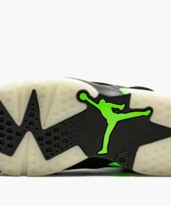 The Air Jordan 6 “Electric Green” is a Summer 2021 colorway of Michael Jordan’s sixth signature shoe that mimics the styling of the rare and unreleased Oregon Ducks Player Exclusive design. Jordan Brand celebrated the iconic Jordan 6’s 30-year-anniversary in 2021 by releasing several popular models of the silhouette alongside this “Electric Green” makeup. From a design standpoint, the “Electric Green” mimics the color block of the Jordan 6’s original “Infrared” colorway, trading the latter’s fiery red accents for a bright neon green hue. The entire upper is constructed of a black synthetic nubuck material that allows for the Electric Green embroidered Jumpman on the nylon lace shroud to garner attention. Additional neon green detailing can be found on the spoiler and on the black painted midsole. Tonal Jumpman embroidery appears on the back of the shoe. A small visible Air unit in the heel is consistent with the original design of the Air Jordan 6. Release date: June 5, 2021.