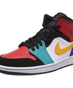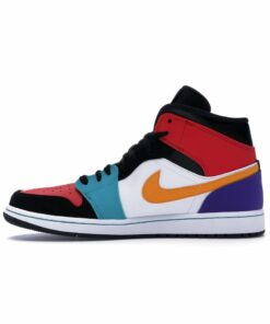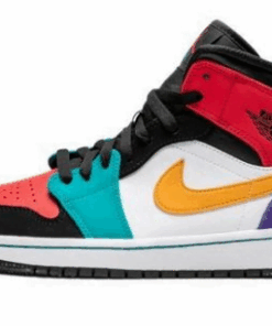 JD 1 Mid Multicolor 554724 is simple-style sneakers using retro colors. The sole is mesh, perforated, and cushioned to allow air to circulate. The outsole of sneakers is made from rubber, which can help prevent slipping. The upper part of the sneakers is decorated with twists and stitches using elastic thread combined with a retro color border. The front of the sneakers has padding and eyelet holes.