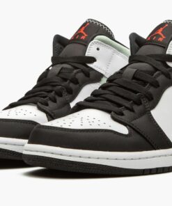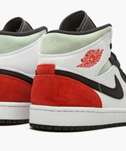 The Air Jordan 1 Mid “Red/Grey/Black Toe” rearranges the color scheme of the original “Black Toe” colorway of Michael Jordan’s first signature shoe in mid-top form. Slimmed down to mid-top height, this Jordan 1 features a familiar color scheme employed by some of the most coveted shoes in Jordan Brand history. A medley of materials appear on various panels across the upper. White leather forms the base and can be found on the perforated toe, mid-panel, and collar overlay. Against the white base, the black nylon overlays on the forefoot, toe cap, and eyelets are reminiscent of the color block of the original “Black Toe” Jordan 1. Branding details include a black nylon Swoosh on either side, a red “Wings” emblem on the collar, and a red accented Jumpman logo on the black nylon tongue tab. Fiery red suede is located on the heel with grey suede appearing on the collar.