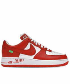 Bright and busy: the Nike Air Force 1 Low x Louis Vuitton By Virgil Abloh White Red is one of 47 pairs that debuted in the Louis Vuitton SS22 runway show. Two-toned LV monogram-printed leather crafts the classic AF1 makeup of this collaborative pair, giving this ‘80s basketball shoe the luxury redesign that it deserves. Gold-coloured Louis Vuitton lettering decorates the sidewall and heel tab, whilst a contrasting green tab draws attention to the stitched-on Swoosh. A perforated toe box works alongside a classic white Air-cushioned midsole to ground this vibrant sneaker with unbeatable levels of premium comfort. Finished with an off-centre branded tongue label and recognisable quotation mark decoration, the Nike Air Force 1 Low x Louis Vuitton By Virgil Abloh White Red is not one to be missed.