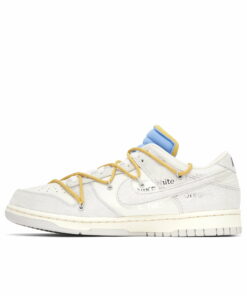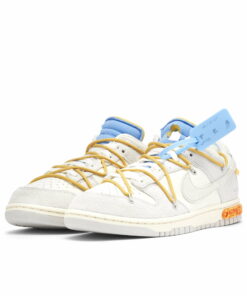The Nike Dunk has secured its legendary status in recent years, and with the success of the Off-White collaboration, it’s not hard to see why. Featuring a blend of canvas, leather and grey overlays on the upper, the Nike Dunk Low x Off-White Dear Summer – 34 of 50 offers up a traditional base. Playful details come courtesy of the overlaid rope lacing system from past Off-White x Nike Dunk Low collaborations. Equipped with an iconic Nike Swoosh on the side, signature text illustrates the lateral quarter and a black Nike logo decorates the heel. Virgil Abloh’s trademark accents arrive in the form of a plastic zip-tie and a pastel blue foam tongue. Complete with a cushioned sole for the unparalleled comfort, the Nike Dunk Low x Off-White 34 of 50 strikes a balance between fashion and function.
