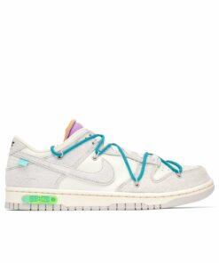 Forming part of the ‘Dear Summer’ collection, the Nike Dunk Low x Off-White Dear Summer – 36 of 50 is a playful collaborative pair that will brighten-up your collection. With an upper crafted of smooth white leather and light grey brushed suede, this design sees a decorative aqua blue lacing system elevate its toned-down base. Including a purple and orange exposed-foam tongue, it’s complete with recognisable Off-White elements such as the matching violet plastic zip tie and light blue tab on its Swoosh. A vibrant green ‘36 of 50’ badge sits on its cream Air-cushioned midsole adds context to the Nike Dunk Low x Off-White Dear Summer – 36 of 50, a pair that guarantees to bring an element of fun to your rotation.