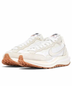 The classic look of the Nike Sacai x VaporWaffle sneakers comes at you again with this edition being released in Sail Gum colour, and they really do pack an incredible punch!Nike and Sacai move away from the usual bright colours and high contrast for a more neutral palette with the Sacai x VaporWaffle Sail Gum, opting for a colour that relies heavily on the soft contrasts of white and beige to bring the sneakers home. Details are everything with this shoe, and the Waffle combo never fails to impress. The unique heel makes for an interesting ride, but everyone who wears them agrees that it’s a supremely comfortable ride that Nike and Sacai have really worked hard to get right. For the gym or casual wear, these Nike Sacai x VaporWaffle Sail Gum sneakers are perfect.