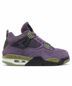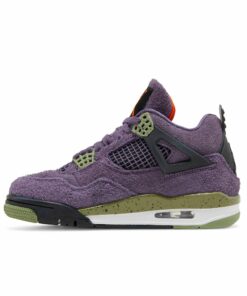 The women’s Air Jordan 4 Retro ‘Canyon Purple’ treats Tinker Hatfield’s 1989 design to a comprehensive makeover. Replacing the shoe’s traditional leather or nubuck build, the upper is crafted from shaggy suede in a vibrant purple finish. Lime green accents land on the speckled eyelets and midsole, while the signature Jumpman logo graces the woven tongue tag in Safety Orange. The bright hues are offset by contrasting hits of black on the molded wings, Jumpman-embossed heel tab, and herringbone-traction rubber outsole.